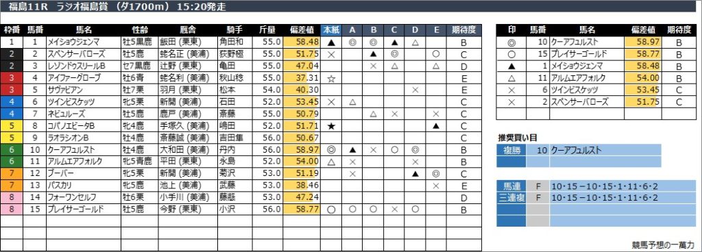 福島11R ラジオ福島賞 (ダ1700m) 15:20発走