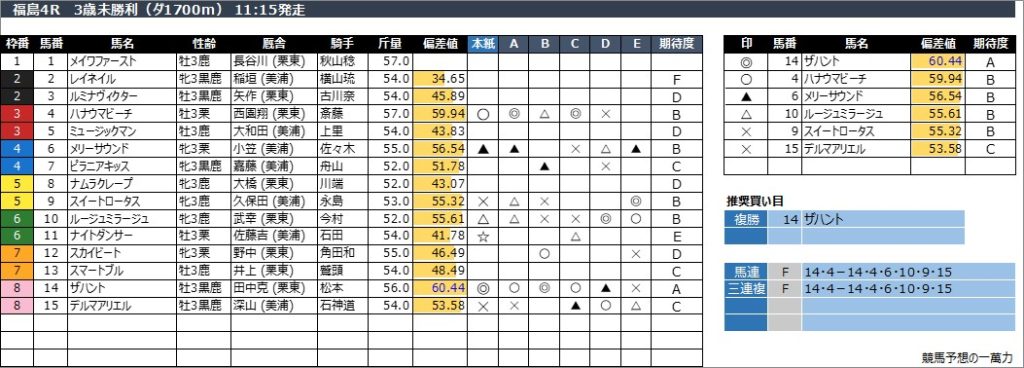 福島4R 3歳未勝利(ダ1700m) 11:15発走