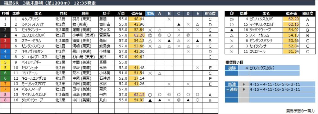 福島6R 3歳未勝利(芝1200m) 12:35発走