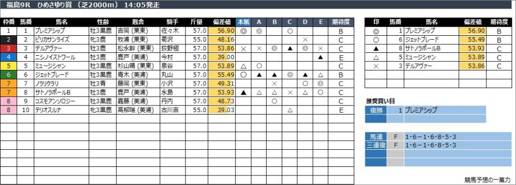 福島9R ひめさゆり賞 (芝2000m) 14:05発走