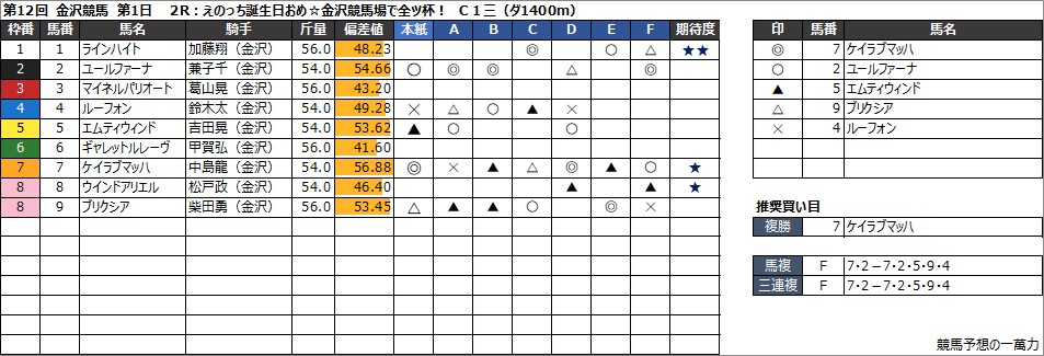 2R:えのっち誕生日おめ☆金沢競馬場で全ツ杯! C1三(ダ1400m)