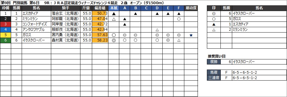 ・複勝 6 イクスクローバー