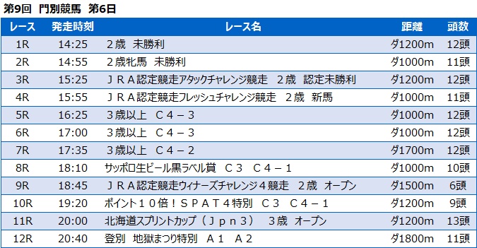 第9回 門別競馬 第6日