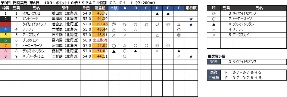 ・馬複 F 10・6-10・6・4・5・9・8