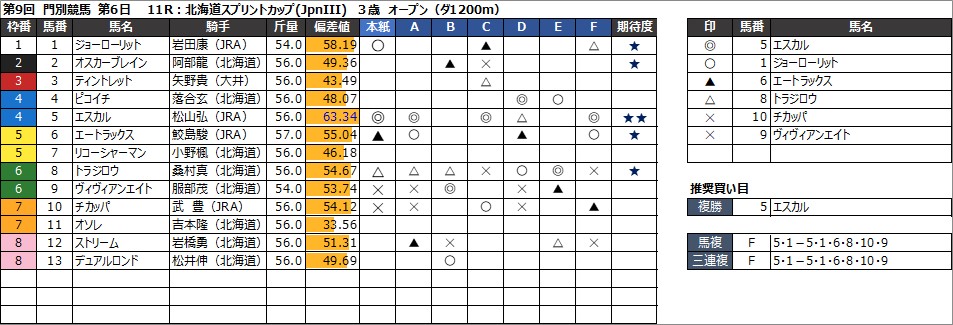 門別競馬予想 8月15日(木) 北海道スプリントカップ(JpnIII) 他