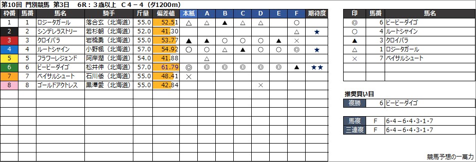 ・複勝 6 ビービーダイゴ
