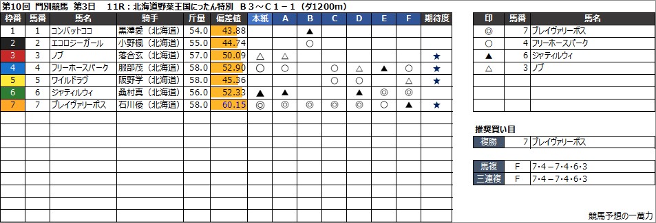 11R:北海道野菜王国にったん特別 B3~C1-1(ダ1200m)