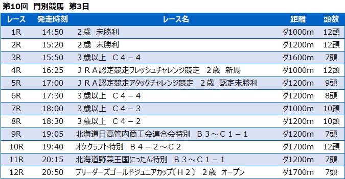 第10回 門別競馬 第3日
