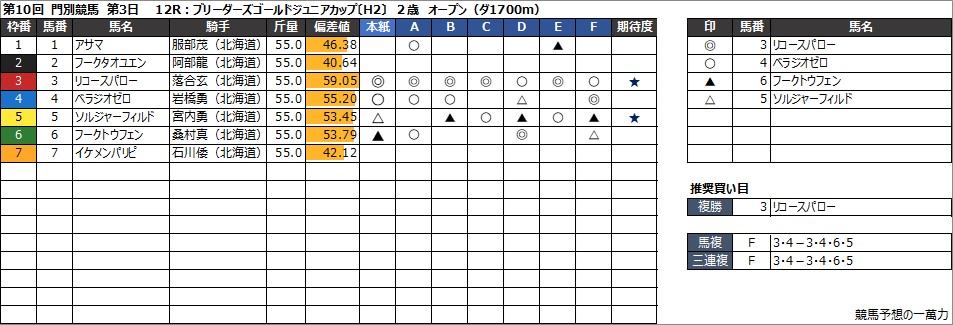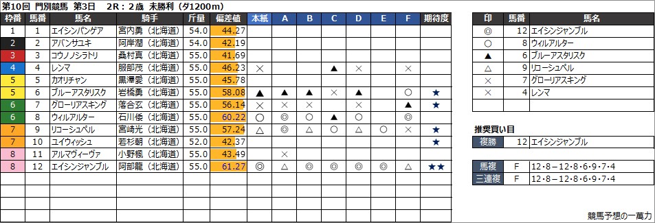 門別競馬予想 8月22日(木) ブリーダーズゴールドジュニアカップ〔H2〕 他