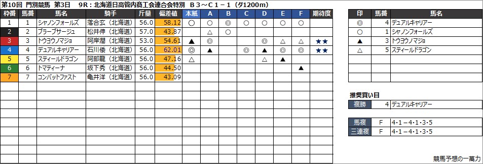 9R:北海道日高管内商工会連合会特別 B3~C1-1(ダ1200m)