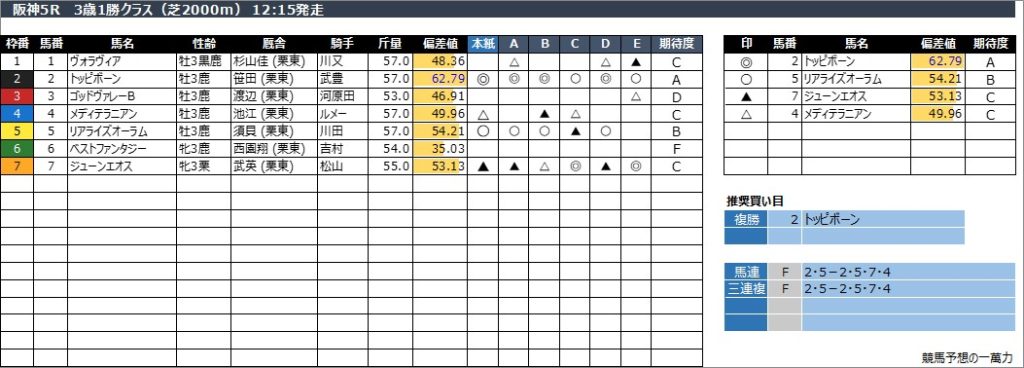 阪神5R 3歳1勝クラス(芝2000m) 12:15発走