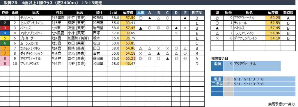 阪神7R 4歳以上1勝クラス(芝2400m) 13:15発走