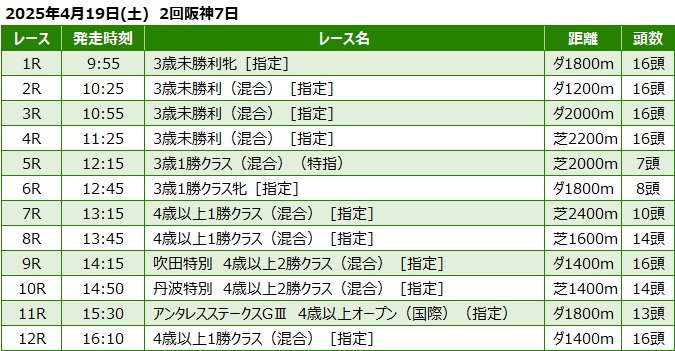 2025年4月19日(土) 阪神競馬の全レース予想です。