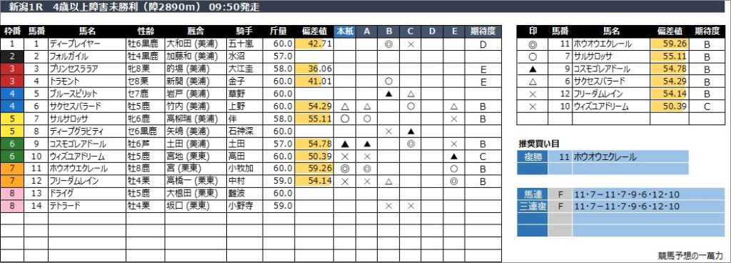 新潟1R 4歳以上障害未勝利(障2890m) 09:50発走