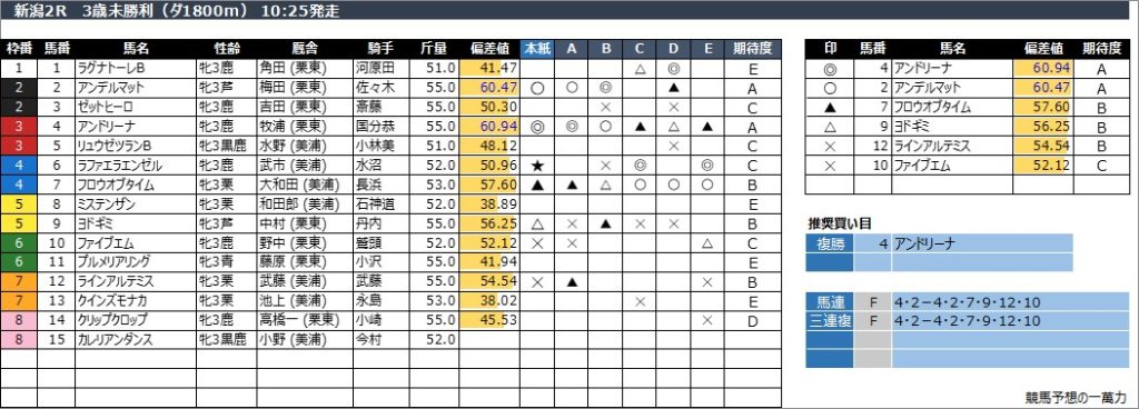 新潟9R わらび賞 (ダ1800m) 14:15発走