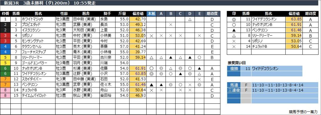 新潟3R 3歳未勝利(ダ1200m) 10:55発走