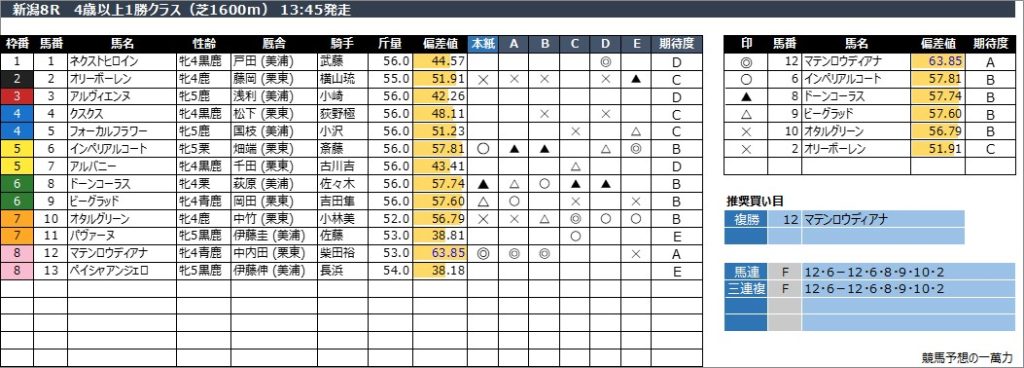 新潟8R 4歳以上1勝クラス(芝1600m) 13:45発走