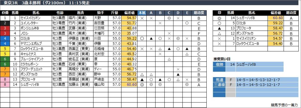 東京3R 3歳未勝利(ダ2100m) 11:15発走