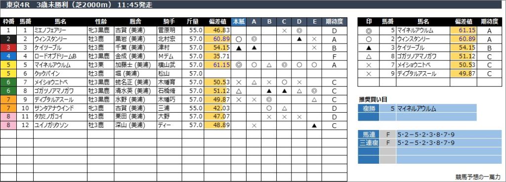 東京4R 3歳未勝利(芝2000m) 11:45発走