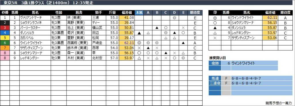 東京5R 3歳1勝クラス(芝1400m) 12:35発走