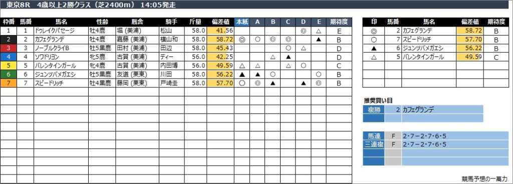 東京8R 4歳以上2勝クラス(芝2400m) 14:05発走