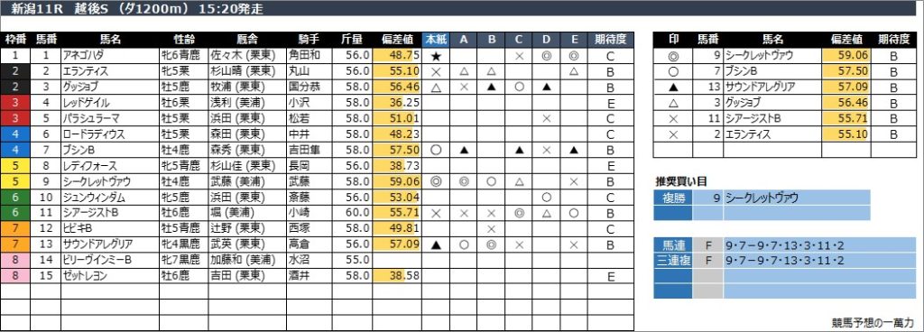 新潟11R 越後S (ダ1200m) 15:20発走