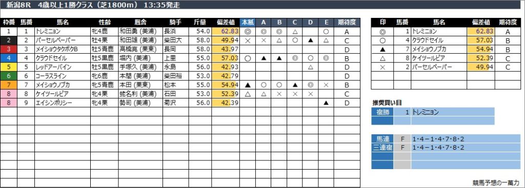 新潟8R 4歳以上1勝クラス(芝1800m) 13:35発走