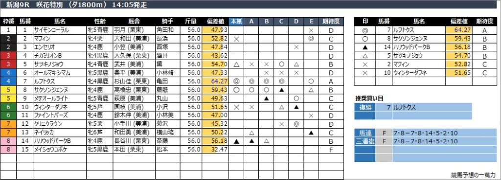新潟9R 咲花特別 (ダ1800m) 14:05発走