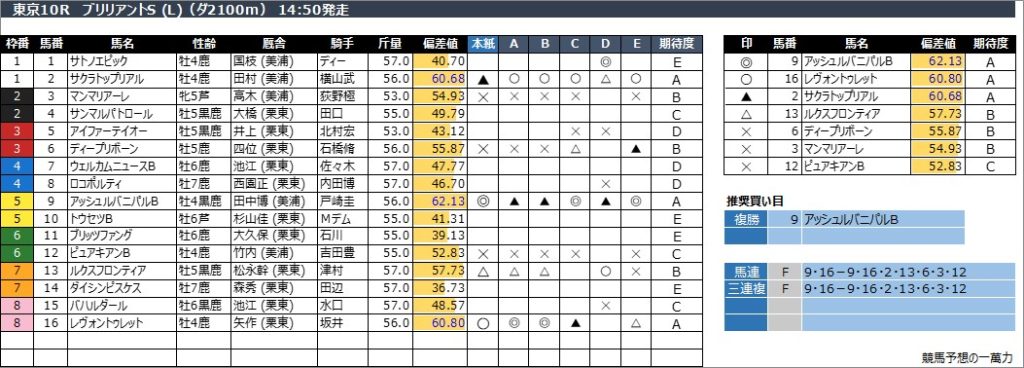 東京10R ブリリアントS (L)(ダ2100m) 14:50発走