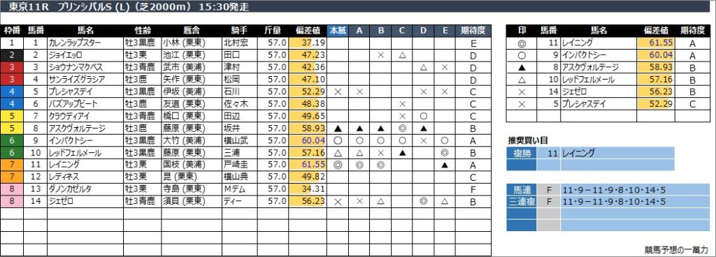 東京11R プリンシパルS (L)(芝2000m) 15:30発走