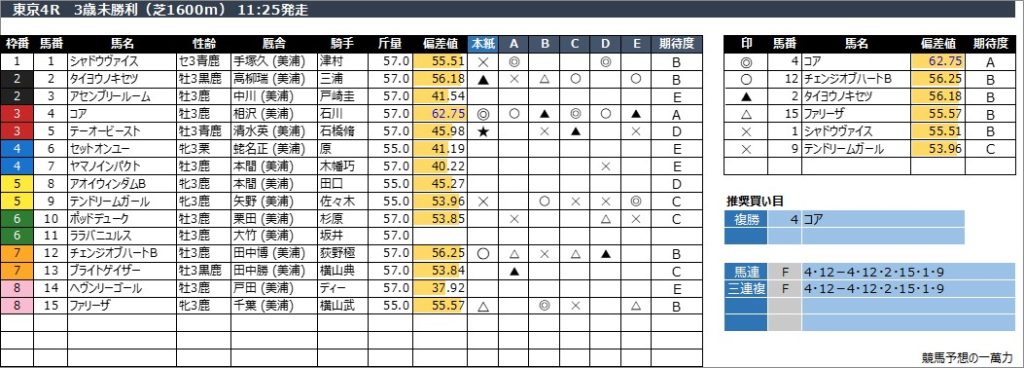 東京4R 3歳未勝利(芝1600m) 11:25発走