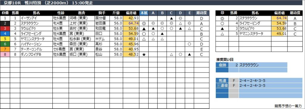 京都10R  鴨川特別 (芝2000m) 15:00発走