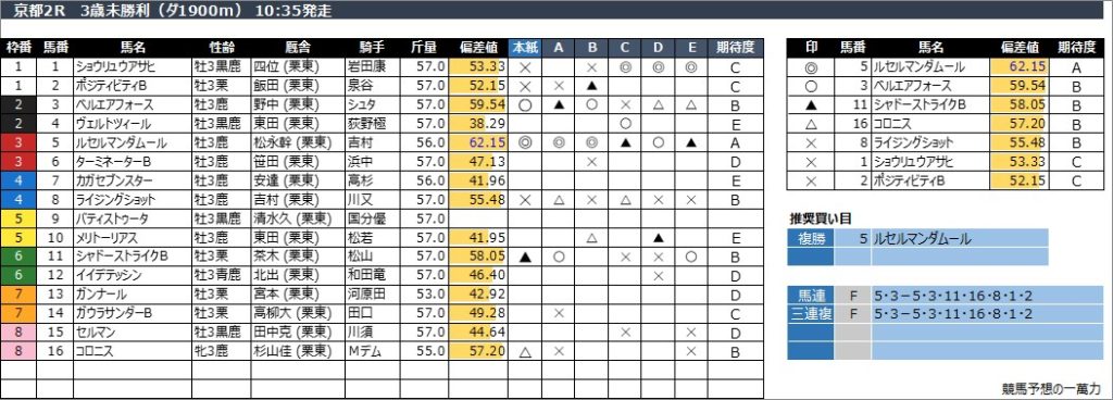 京都2R  3歳未勝利(ダ1900m) 10:35発走