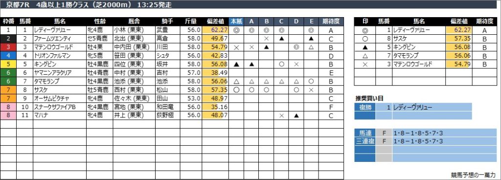 京都7R  4歳以上1勝クラス(芝2000m) 13:25発走