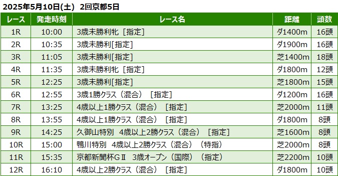 2025年5月10日(土) 京都競馬の全レース予想です。