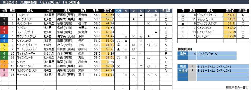 新潟10R 荒川峡特別 (芝2200m) 14:50発走