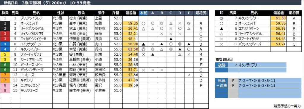 新潟3R 3歳未勝利(ダ1200m) 10:55発走