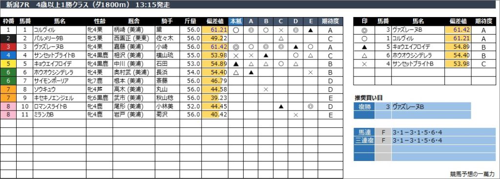 新潟7R 4歳以上1勝クラス(ダ1800m) 13:15発走