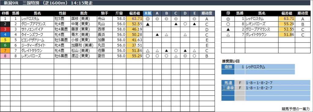 新潟9R 三国特別 (芝1600m) 14:15発走