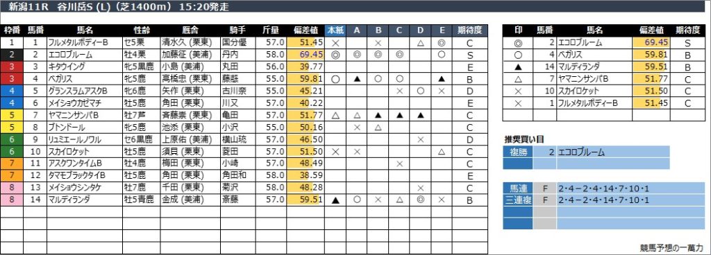 新潟11R  谷川岳S (L)(芝1400m) 15:20発走