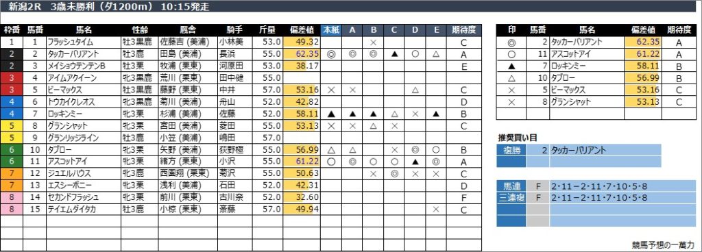 新潟2R  3歳未勝利(ダ1200m) 10:15発走