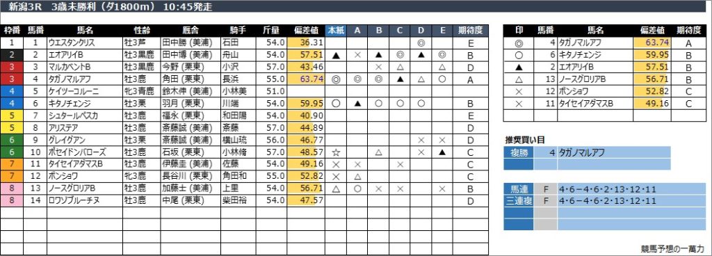 新潟10R  五泉特別 (ダ1800m) 14:40発走