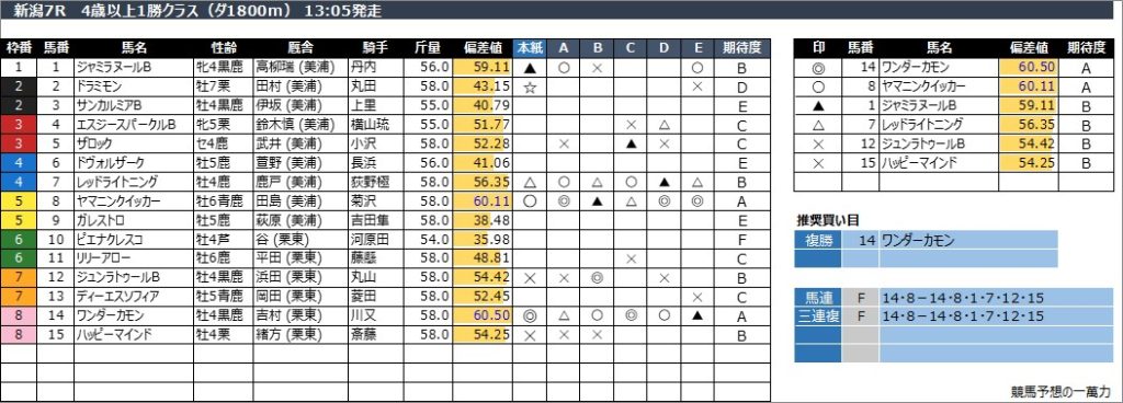 新潟7R  4歳以上1勝クラス(ダ1800m) 13:05発走