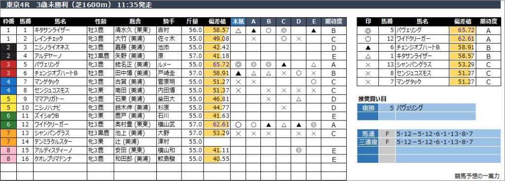 東京4R 3歳未勝利(芝1600m) 11:35発走