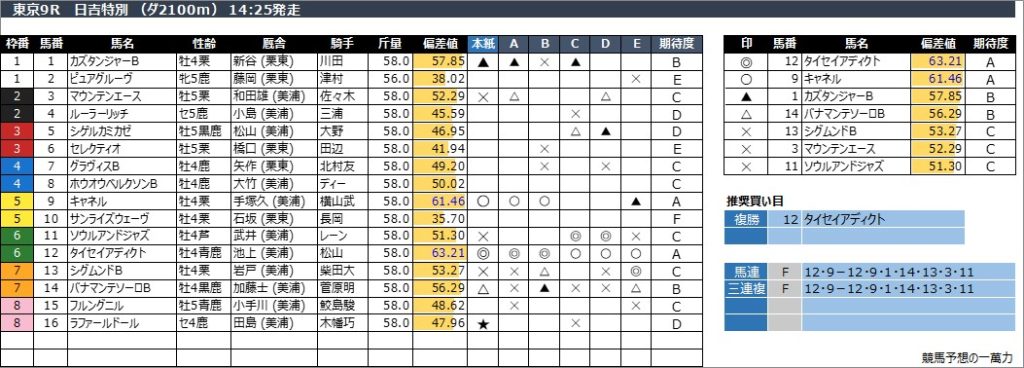東京9R 日吉特別 (ダ2100m) 14:25発走