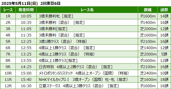 2025年5月11日(日) 東京競馬の全レース予想です。