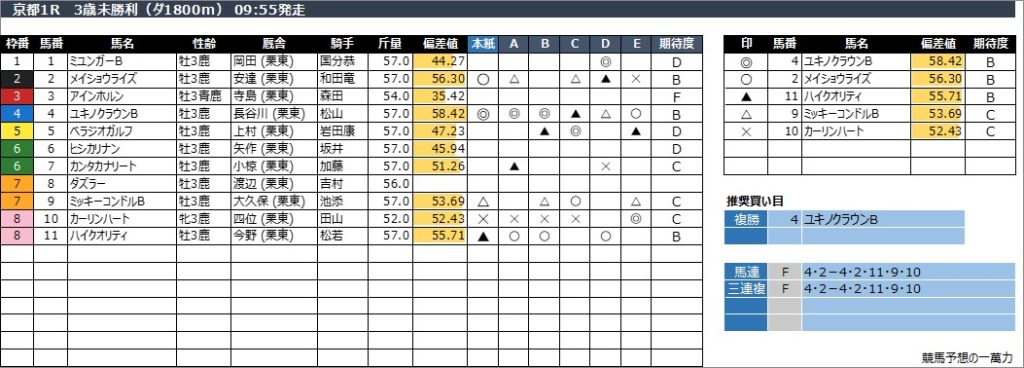 京都1R 3歳未勝利(ダ1800m) 09:55発走