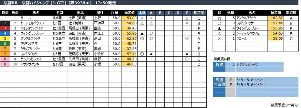 京都8R 京都ハイジャンプ (J・GII)(障3930m) 13:50発走
