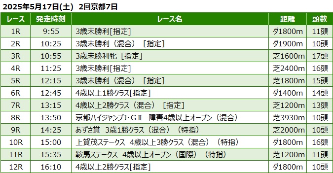 2025年5月17日(土) 京都競馬の全レース予想です。
