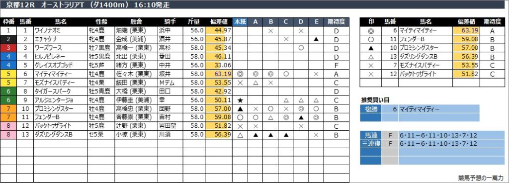 京都12R オーストラリアT (ダ1400m) 16:10発走